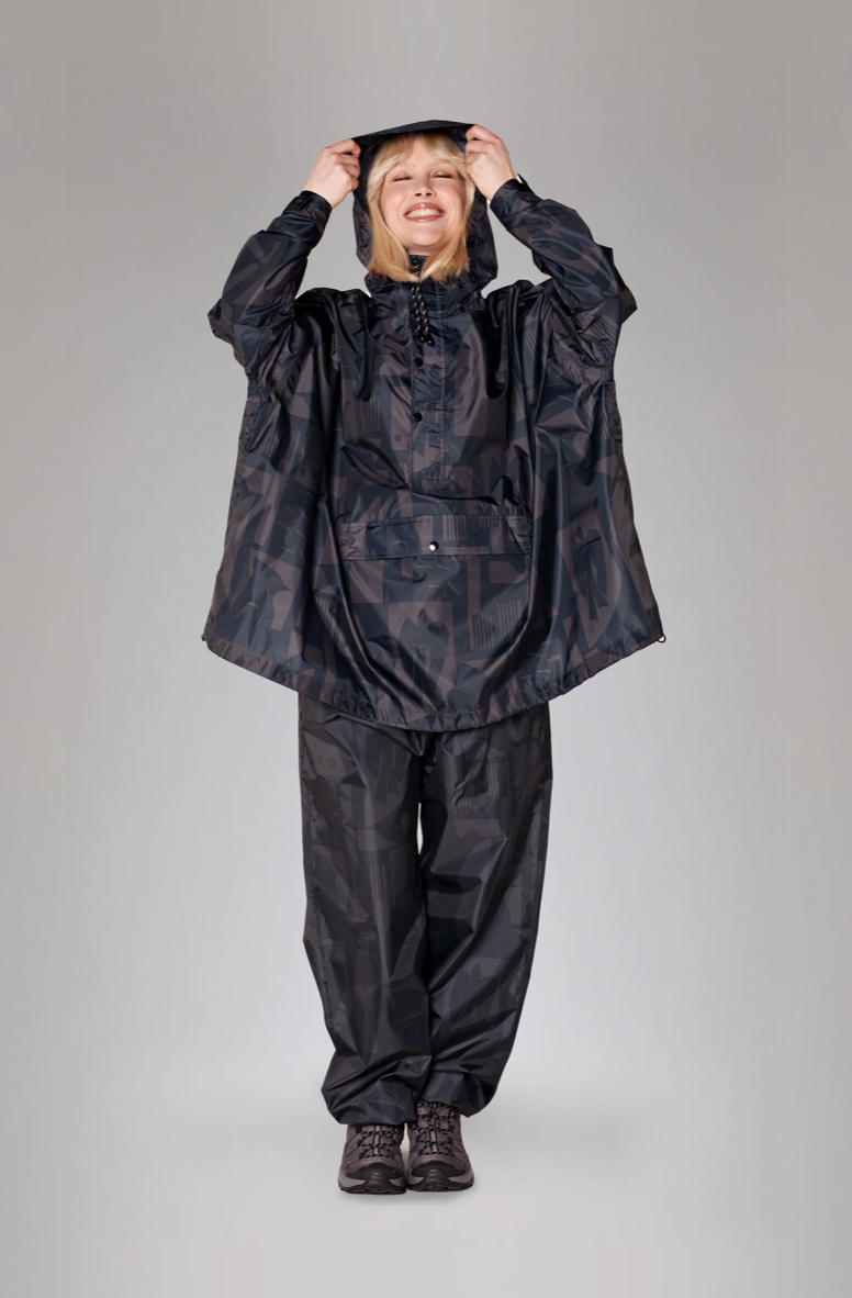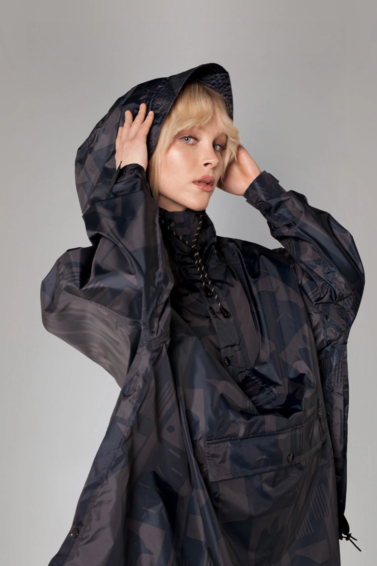 Kui must on kõik, siis Back to Black vihmamantel on sinu jaoks olemas. See abstraktne ton sur ton trükis on peen, puhas ja näeb alati hea välja. Jää salapäraseks, püsi kuivana.