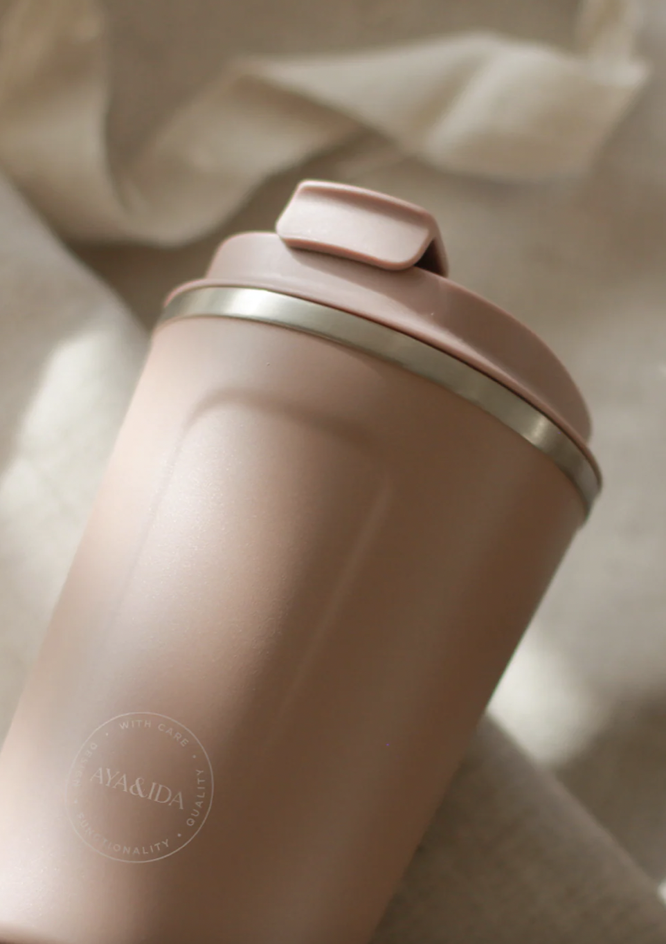 AYA&IDA CUP2GO võimaldab teil liikvel olles nautida tassikest sooja kohvi või teed, aidates samal ajal planeedil hingata. Korduvkasutatav CUP2GO on loodud teid silmas pidades ja sellel on praktiline kaas, millest on mugav juua, kuid mis on siiski 100% lekkekindel. Tass on disainitud Taanis, värvides, mis sobivad meie populaarsete joogipudelitega.