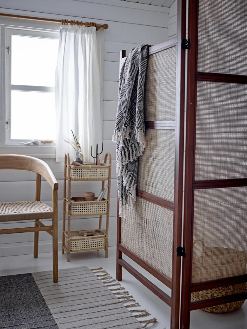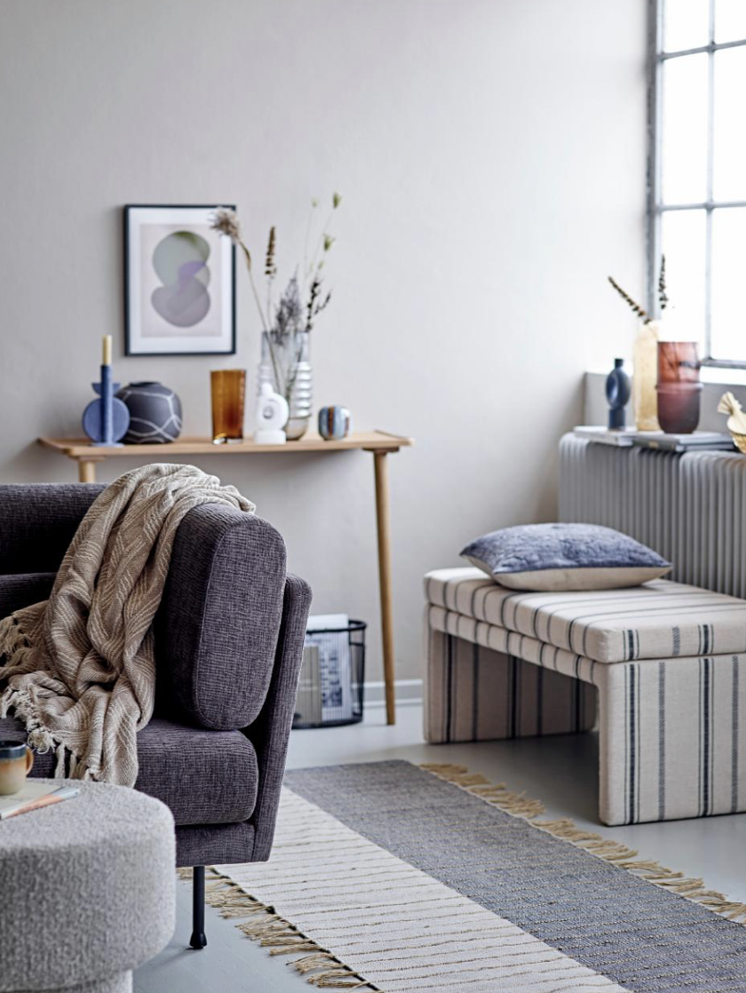 Bloomingville’i Aciano vaip on kaunis kootud vaip, mis on osaliselt valmistatud puuvillast. Vaibal on stiilne disain, millel on pidevad triibud ja mõlemal küljel narmastega ääristatud vaip. Kasutage vaipa põrandal voodi kõrval magamistoas, esikus või kontoris.