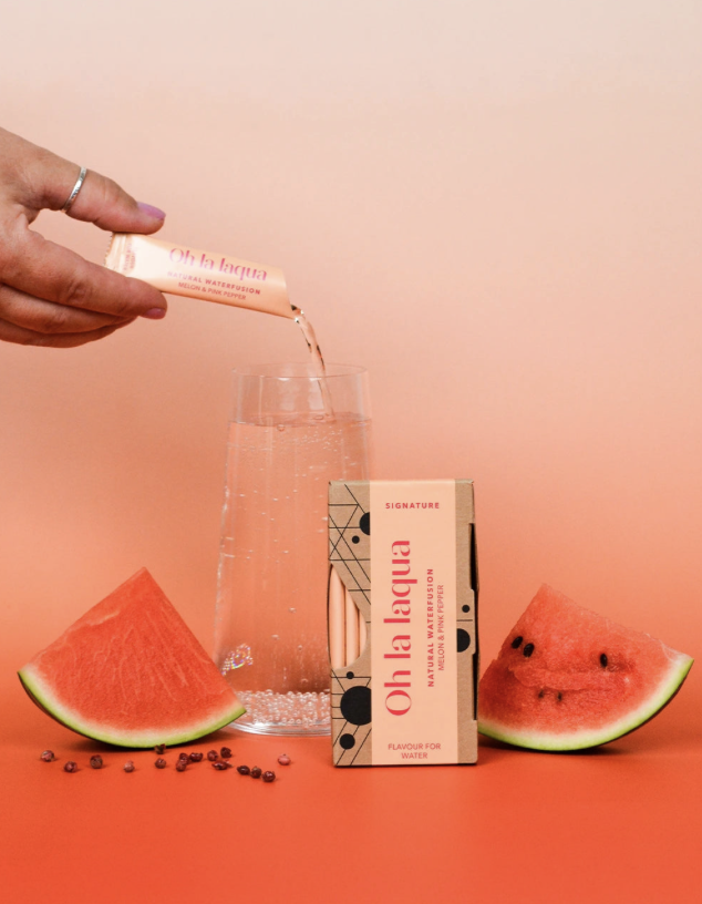 Päikesetervitus hommikul, kuutervitus öösel ja mis seal ikka? Melonitervitus. See õndsa arbuusi ja roosa pipra kombinatsioon on nagu joogaharjutus joomiseks. Külluslikult puuviljane ja värskendav, näpuotsatäie roosa pipra üllatusega. See Waterfusion sobib ideaalselt teie joogipudelisse mati kõrvale ja alati, kui soovite oma igapäevaellu maagiat lisada. Nagu kõik meie sordid, on ka Melon & Pink Pepper vegan, täiesti looduslik ega sisalda suhkrut, magusaineid ega kunstlikke lisaaineid.