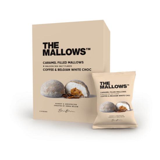 Karamelliga täidetud vahukommid, mis on kaetud Belgia valge šokolaadi ja karamelliga. Šokolaadikihtide vahele on puistatud kohvi – erakordne elamus igale kohvisõbrale!