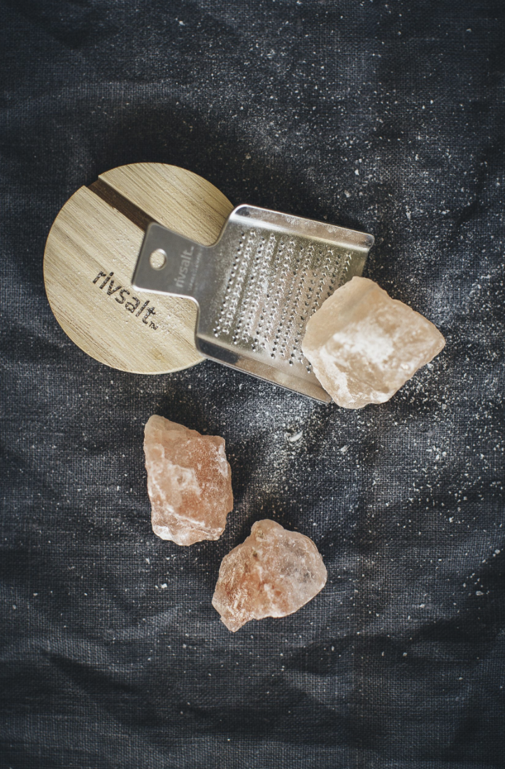See originaalne rivsoolatoode sisaldab Jaapani stiilis riivi, Himaalaja soolakivi ja töötlemata naturaalsest tammest valmistatud lauaalust.
