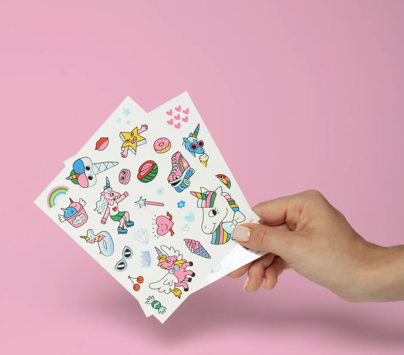 See 50 neoon- ja kuldse ajutise tĂ€toveeringuga leht on tĂ€is lummavaid ĂŒkssarvikuid, sĂ€delevaid vikerkaaresid, tĂ€hti, sĂŒdameid ja palju muid maagilisi ĂŒllatusi, mida oma nahale kanda.