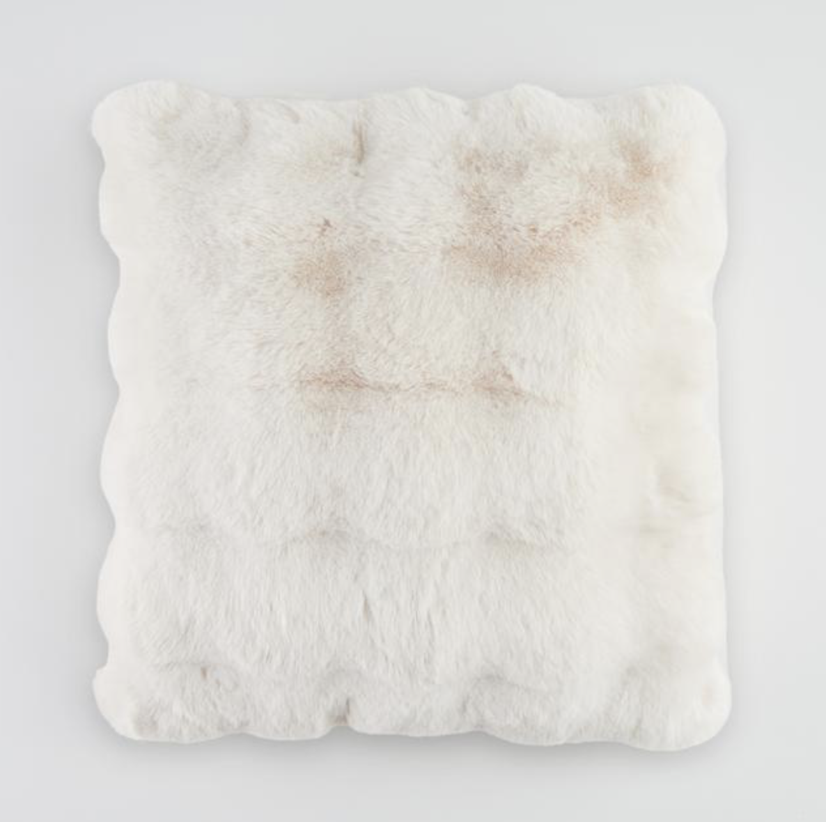 Pehme heledat värvitooni padjakate Pehme karvane viimistlus loob hubase atmosfääri, mis sobib suurepäraselt lõõgastumiseks ja puhkamiseks. Hele värv lisab interjööri soojust ja valgust. Komplekteeri sama tooni pleediga.