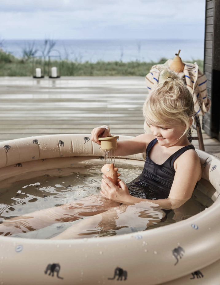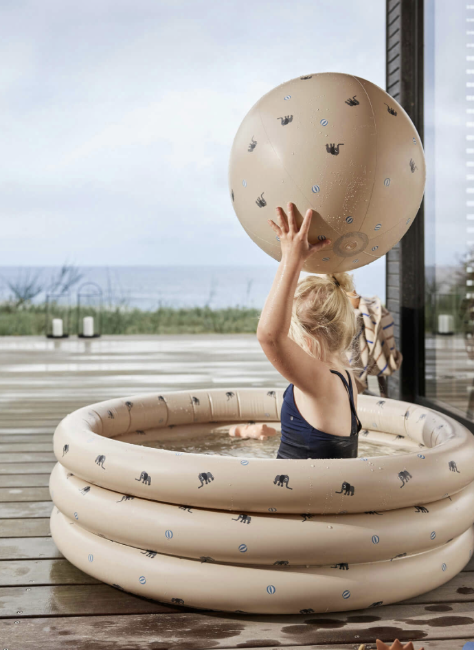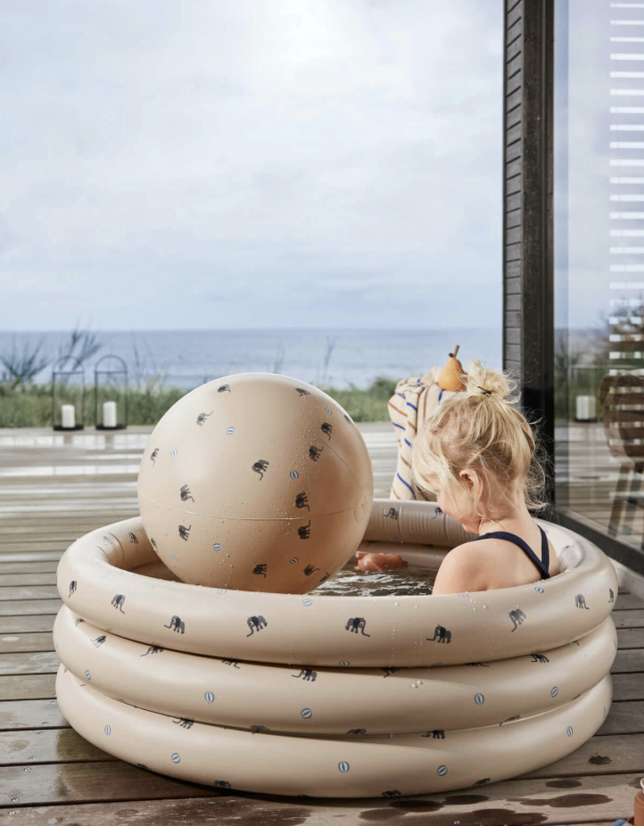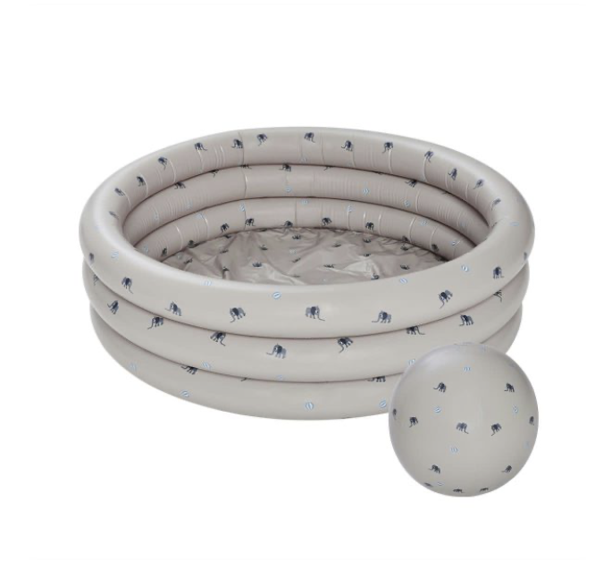 OYOY Mini mahukas täispuhutav bassein on kaunistatud väikeste, armsate sinakashallide elevantidega ning kergete siniste pallikestega. Disain on tagasihoidlik, kuid silmapaistev – sobib hästi nii koju, rõdule, terrassile kui ka randa või suvilasse.