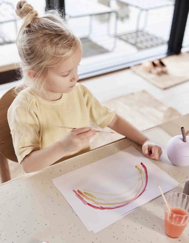 Värvilised konfetid lisavad mängulist hõngu ja pange tähele, et konfeti muster võib varieeruda, muutes iga mati ainulaadseks. Erksate konfettidega määrdunudvalges toonis suurendage oma loomingulist ruumi Confetti lauamati praktilisuse ja stiiliga.