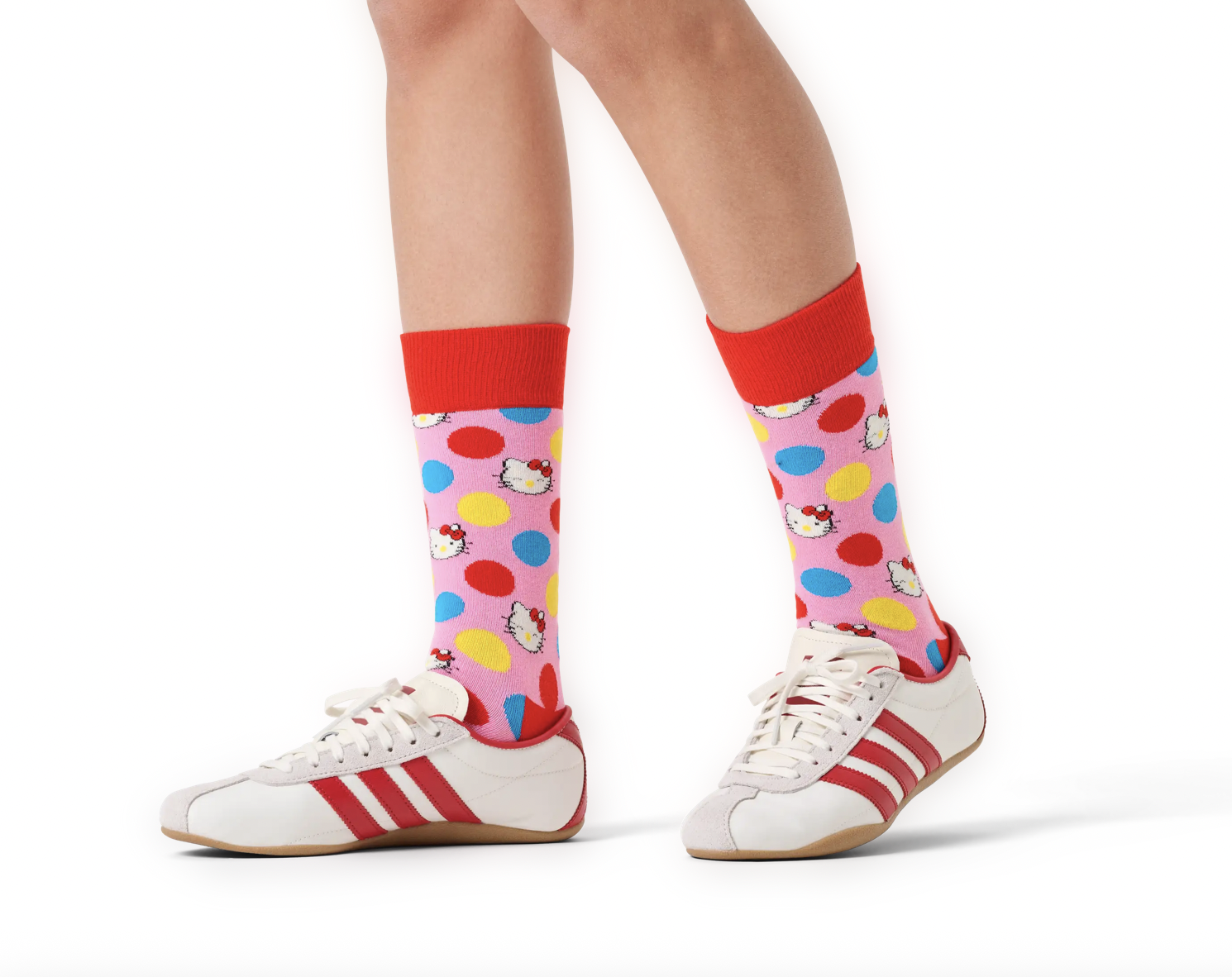 See on parim mõlemast maailmast! Klassikaline Happy Socksi suurte täppidega disain kohtub Hello Kitty maailmaga julgete värvide segus. See on armas ja trendikas moeavaldus. Need sokid on valmistatud orgaanilisest kammitud puuvillasegust ning neil on tugevdatud kand ja varvas pika eluea ja laitmatu mugavuse tagamiseks.
