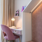 Siin kodus oli üleval korrusel algselt 4 magamistuba, meie muutsime selle 3-ks magamistoaks. Tehes kahest toast kokku ühe suurema magamistoa, kus jaotasime ära lõõgastumise ja õppimise osa. Lisaks suurendasime teise korruse vannituba, et sinna mahuks mõnusalt ära nii vann kui ka dush. Projekti algfaasis on alati hea löögile saada, kuna siis saad oma kodu kujundada täpselt oma soovide järgi.