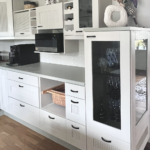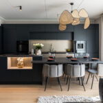 Siin uues kodus aitasime läbi mõelda kogu maja mööbliplaani. Koostasime mööbliplaanid, millega meie klientidel oli juba lihtsam pöörduda otse tootjate poole ja võimalikult täpsed hinnapakkumised saada. Nõustasin materjalide ja toonide valikul. Siin fotol näete kööki, mis sai teostatud Ruuby abiga. Ülejäänud kodu täieneb järk järgult.