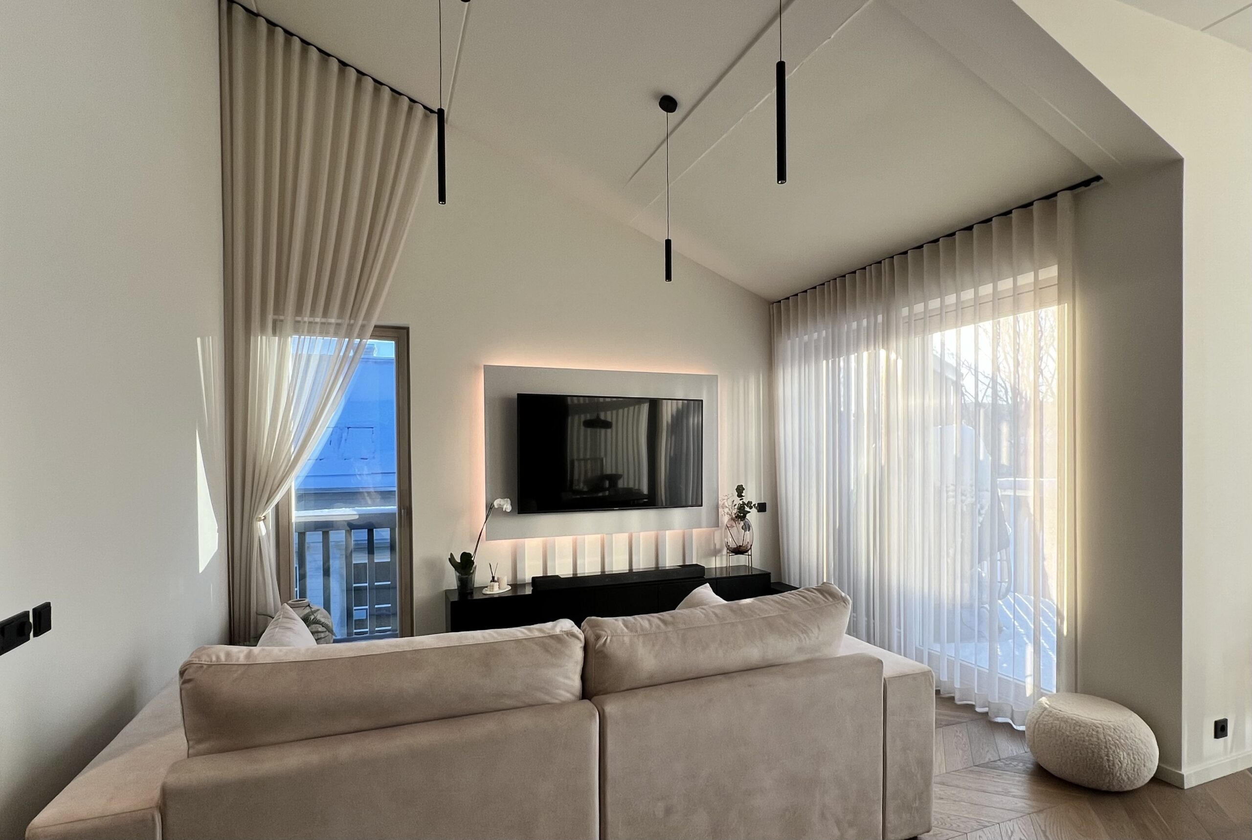 Meie eesmärk oli luua mitte lihtsalt kodu, vaid tõeline hubane oaas, kus kõik tunneksid ennast imeliselt. Oleme mõelnud läbi iga detaili, alustades garderoobi lahendustest, et kõik asjad leiaksid endale ideaalse koha. Köögist kuni garderoobideni ja TV seina lahenduseni – kõik on hoolikalt kujundatud ja valitud, et see kodu oleks täiuslik.